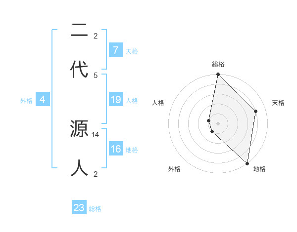 二代 源人さんの総格は23画の5点!
