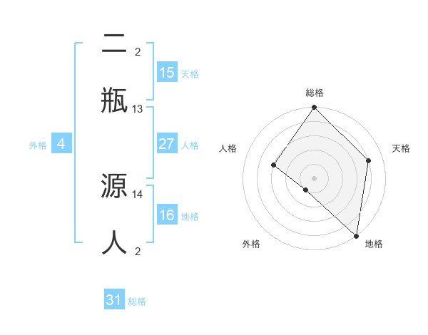 二瓶 源人さんの総格は31画の5点!