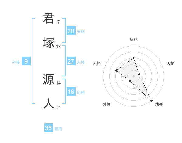 君塚 源人さんの総格は36画の3点!