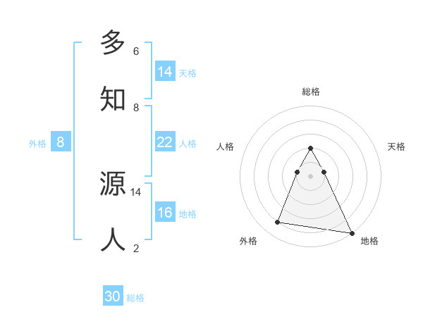 多知 源人さんの総格は30画の2点!