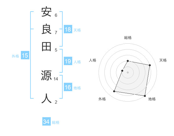 安良田 源人さんの総格は34画の2点!