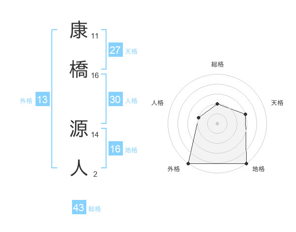 康橋 源人さんの外格は13画の5点!