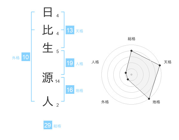 日比生 源人さんの総格は29画の4点!