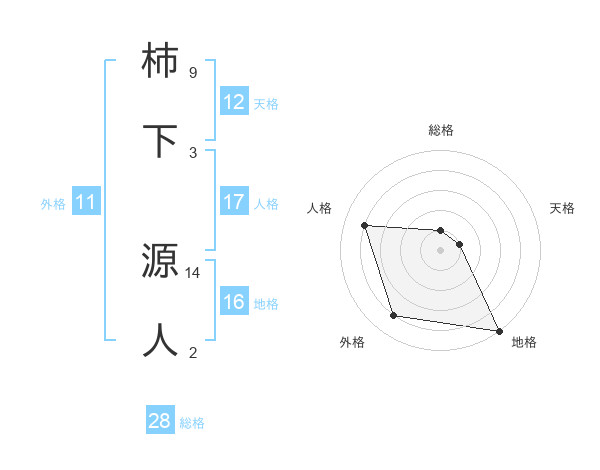 柿下 源人さんの天格は12画の1点!