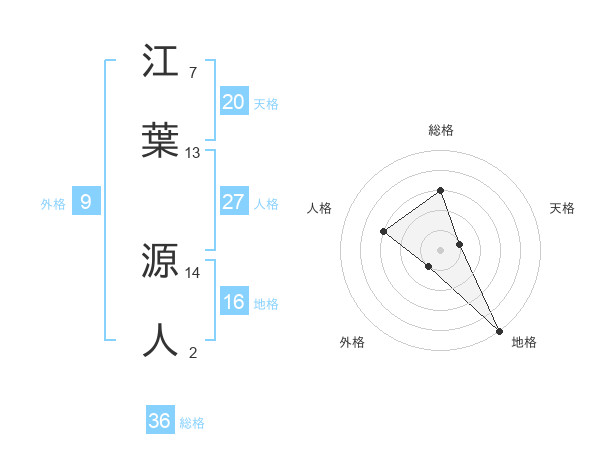 江葉 源人さんの総格は36画の3点!