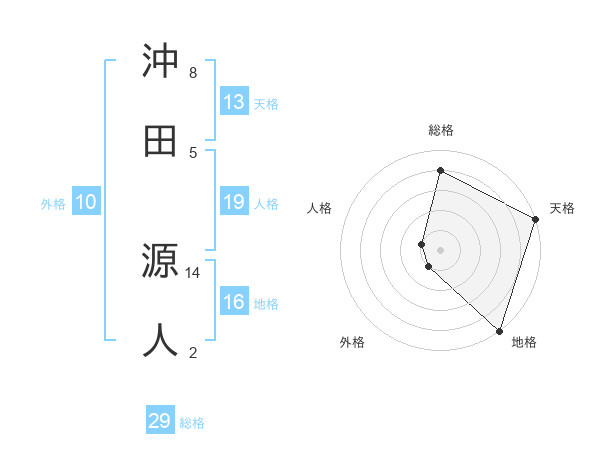 沖田 源人さんの総格は29画の4点!
