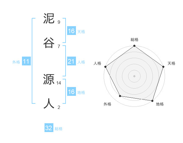 泥谷 源人さんの天格は16画の5点!