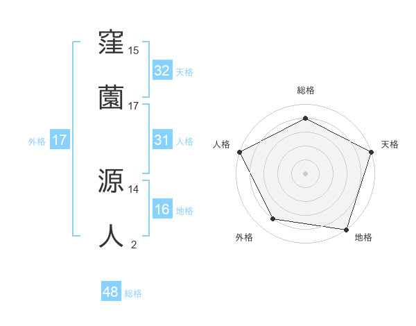 窪薗 源人さんの天格は32画の5点!
