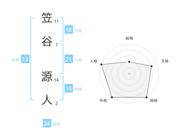 笠谷 源人さんの総格は34画の2点!
