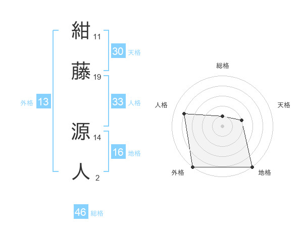 紺藤 源人さんを姓名の画数から五運を鑑定