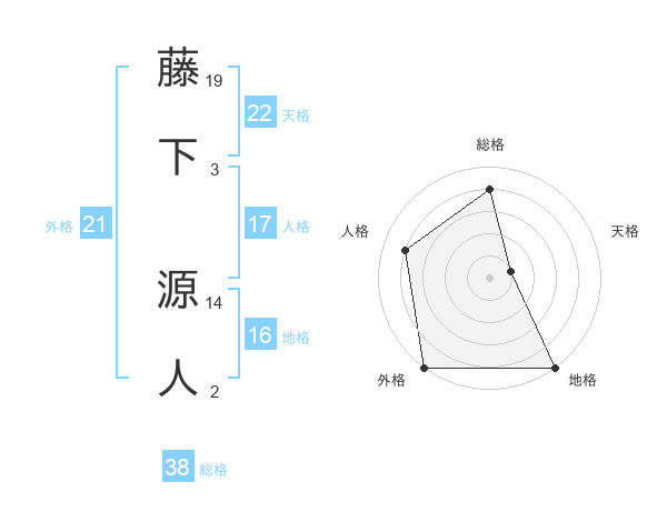 藤下 源人さんの総格は38画の4点!