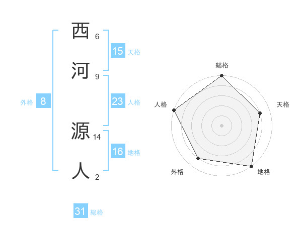 西河 源人さんの総格は31画の5点!