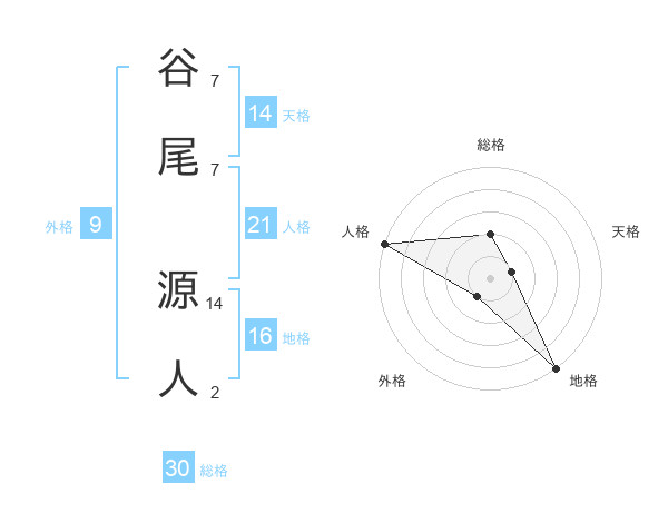 谷尾 源人さんの総格は30画の2点!