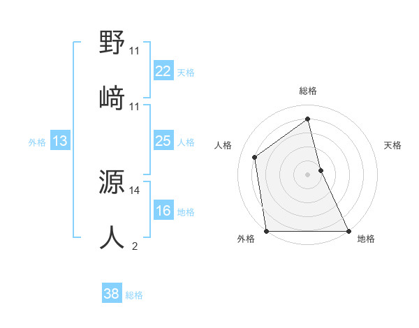 野﨑 源人さんを姓名の画数から五運を鑑定
