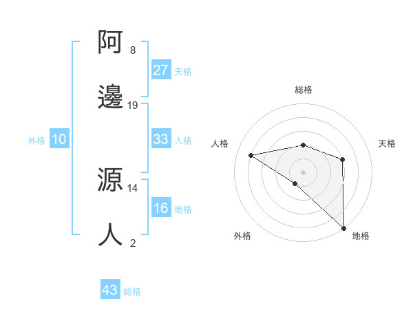 阿邊 源人さんの総格は43画の2点!
