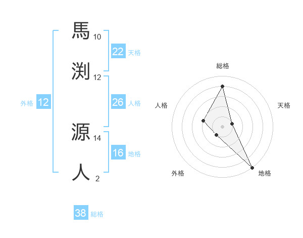 馬渕 源人さんの総格は38画の4点!