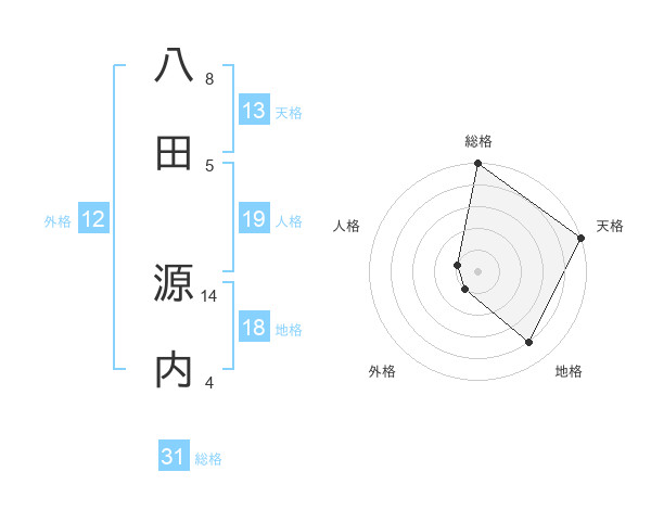 八田 源内さんの天格は13画の5点!