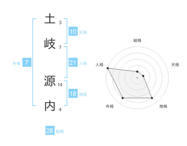 土岐 源内さんの総格は28画の1点!