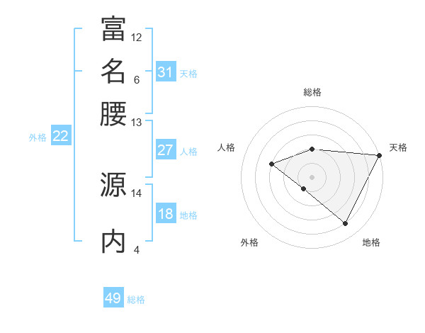富名腰 源内さんの総格は49画の2点!