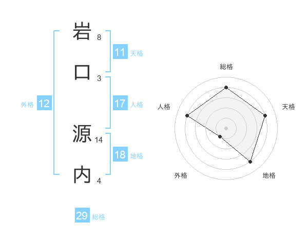 岩口 源内さんの総格は29画の4点!