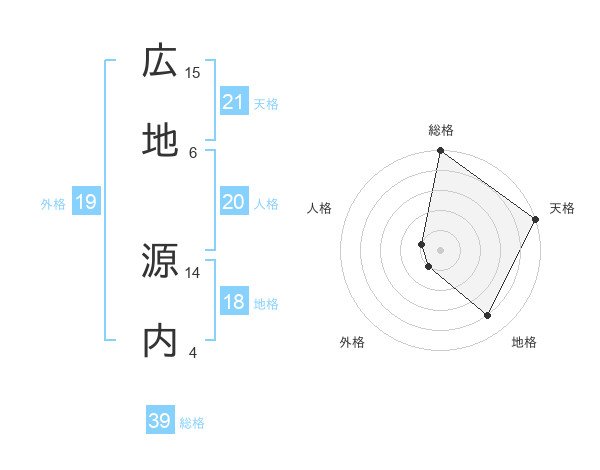 広地 源内さんの天格は21画の5点!