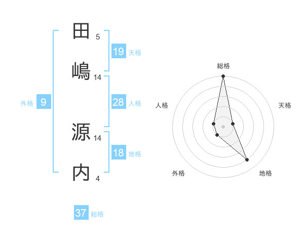 田嶋 源内さんを姓名の画数から五運を鑑定