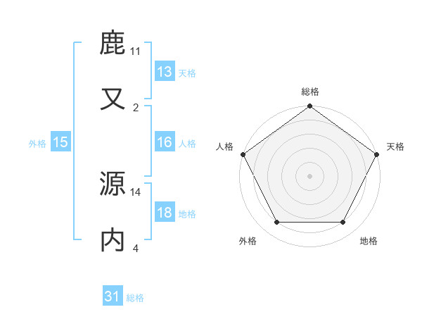 鹿又 源内さんの総格は31画の5点!