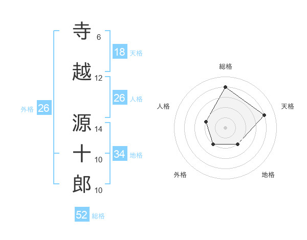 寺越 源十郎さんの総格は52画の4点!