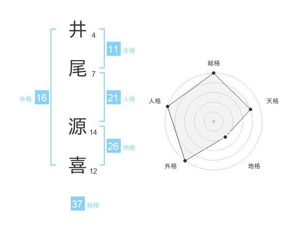 井尾 源喜さんの総格は37画の5点!