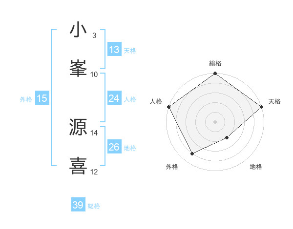 小峯 源喜さんを姓名の画数から五運を鑑定