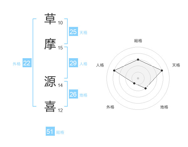 草摩 源喜さんを姓名の画数から五運を鑑定