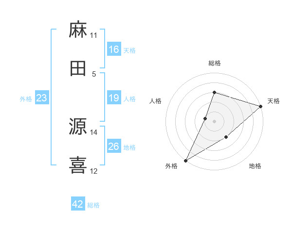 麻田 源喜さんの外格は23画の5点!