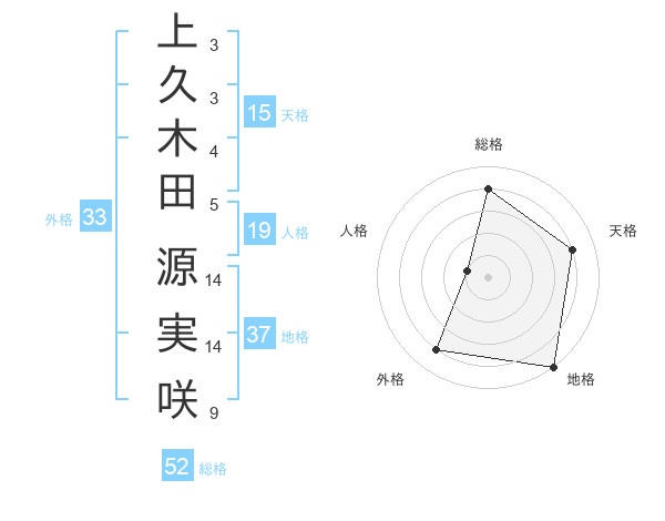 上久木田 源実咲さんを姓名の画数から五運を鑑定