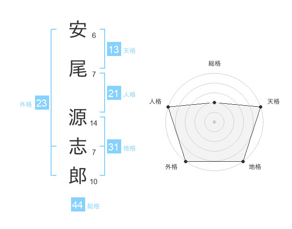 安尾 源志郎さんの天格は13画の5点!