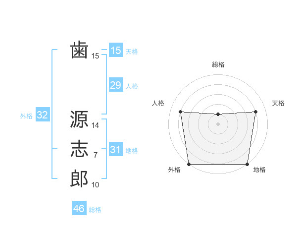 歯 源志郎さんの天格は15画の4点!