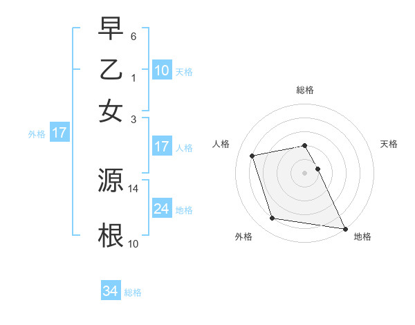 早乙女 源根さんを姓名の画数から五運を鑑定