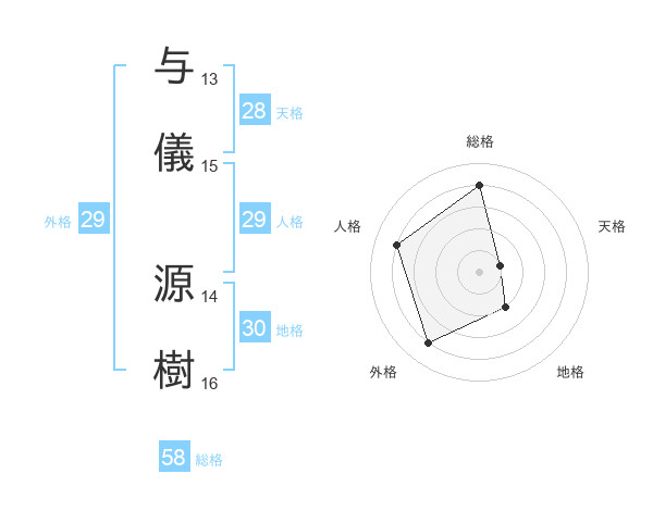 与儀 源樹さんの人格は29画の4点!