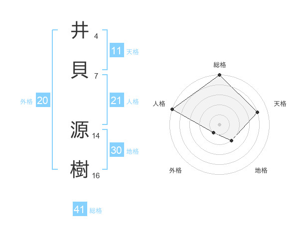 井貝 源樹さんを姓名の画数から五運を鑑定