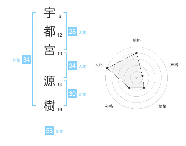 宇都宮 源樹さんを姓名の画数から五運を鑑定
