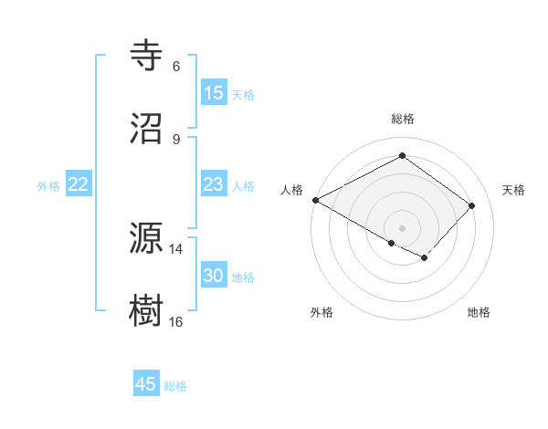 寺沼 源樹さんの総格は45画の4点!