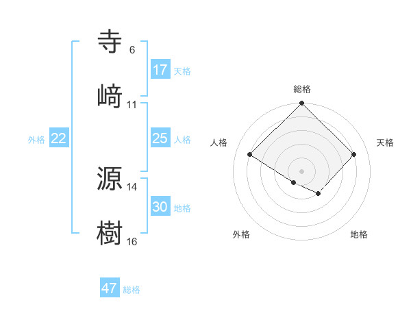 寺﨑 源樹さんの総格は47画の5点!