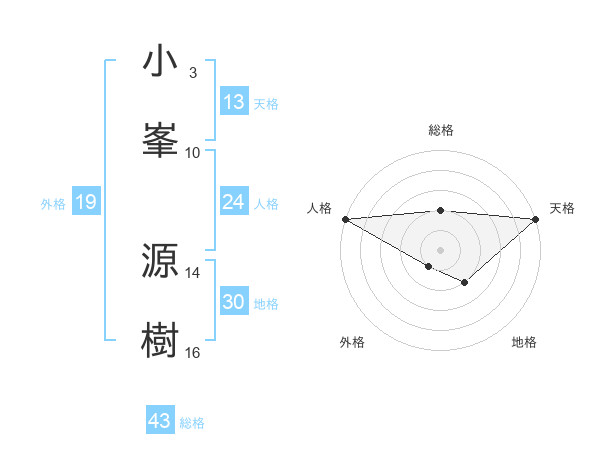 小峯 源樹さんを姓名の画数から五運を鑑定