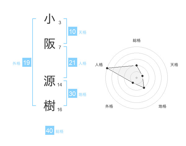 小阪 源樹さんを姓名の画数から五運を鑑定
