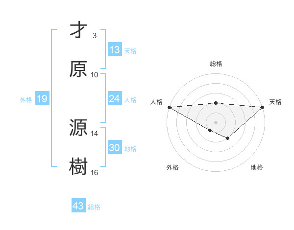 才原 源樹さんの天格は13画の5点!