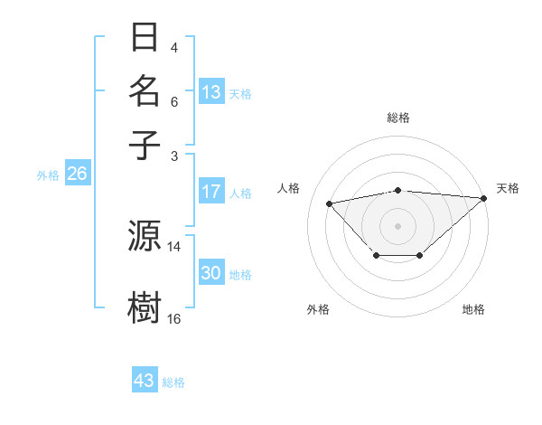 日名子 源樹さんの天格は13画の5点!