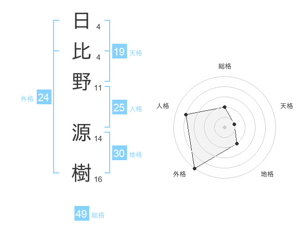 日比野 源樹さんを姓名の画数から五運を鑑定