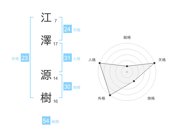 江澤 源樹さんを姓名の画数から五運を鑑定