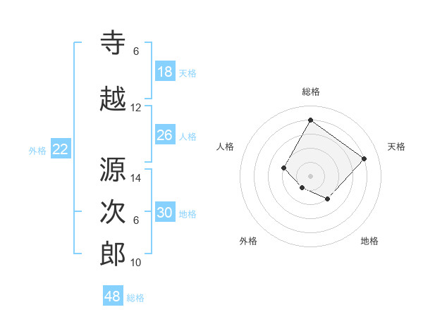 寺越 源次郎さんを姓名の画数から五運を鑑定