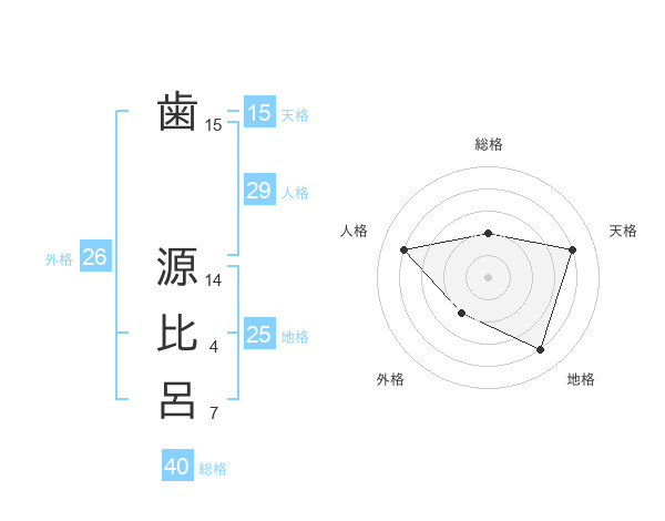 歯 源比呂さんを姓名の画数から五運を鑑定