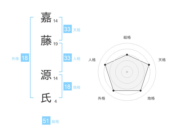 嘉藤 源氏さんの総格は51画の3点!
